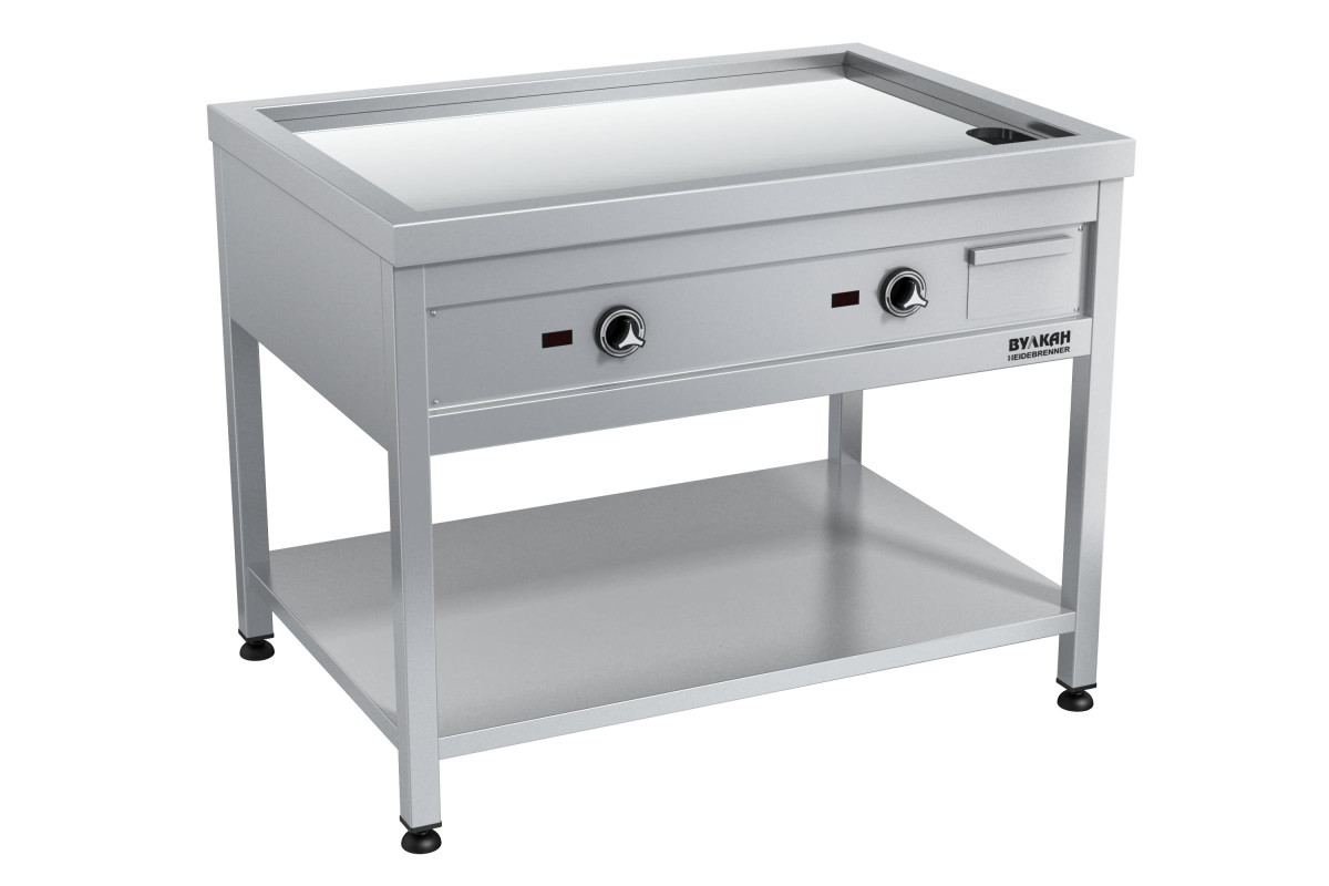 1000х700х850мм, Напольная плита теппан-яки из нержавеющей стали с зеркальным хромированным покрытием, которое защищает продукты от пригорания во время жарки и обладает высокой устойчивостью к ударам ножам и царапинам. На поверхности- сливное отверстие для сбора жира, съёмный жиросборник. Широкий диапазон температур каждой из 2-ух независимых зон нагрева позволяет готовить одновременно несколько блюд, жарочная поверхность: 896х540мм, 2х6кВт, питание: 380В Брутто: 176кг