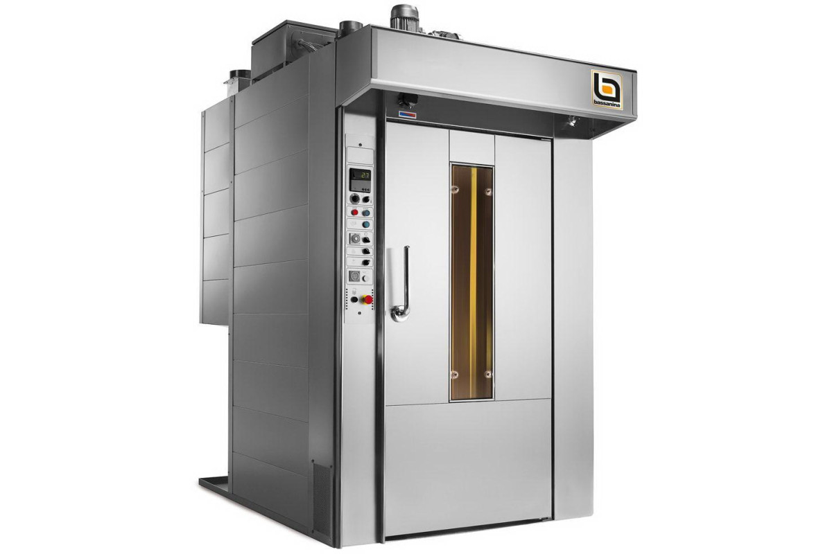 соединенным с пекарной камерой. Низкая скорость циркуляции воздуха и его обратный поток гарантируют однородность выпекания. Односкоростной электродвигатель (предварительно заданная скорость 1400 оборотов в минуту, производительность 35-40 м3/мин) может оснащаться вариатором скорости. Мощность составляет 1.5 кВт для модели 68. Благодаря эффективности теплообменника (4 прохода), особенной конструкции пекарной камеры (соотношение объема, различная толщина и комбинация материалов, применение специальной системы их сварки), низкой скорости вентиляции и контролируемому потоку воздуха (регулируемые воздушные каналы с поворотными направляющими потока), возможно получение однородного пропекания и одинакового цвета изделий (на всех противнях и на всех ярусах стеллажа), а также одинаковой толщины корочки.