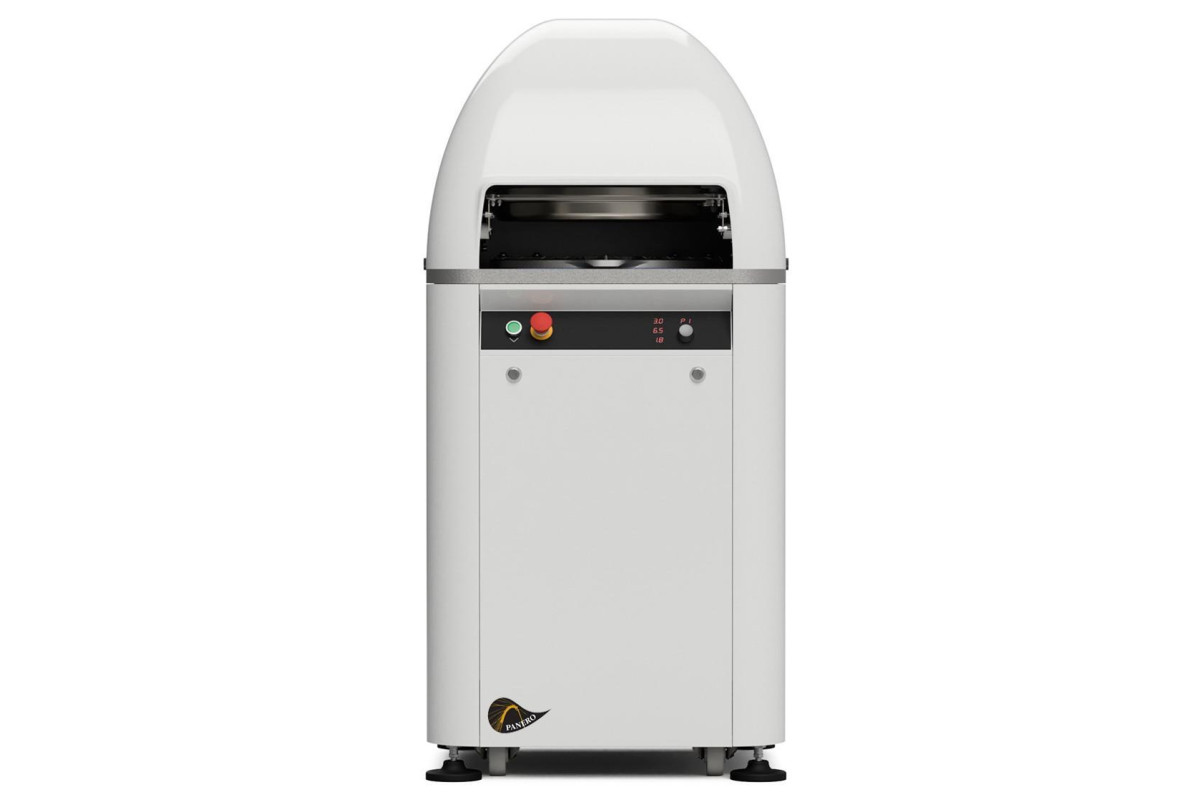 Автоматический тестоделитель-округлитель SPA RP A 22 с делением и округлением на 22 частей. Машина с гидравлическим приводом, с двумя цилиндрами для прессования, одним цилиндром для разрезания и одним — для округления. Панель управления с возможностью регулировки времени прессования, округления и раскрытия формовочной камеры. Кнопка очистки ножей. Возможность сохранить до 9 различных программ.