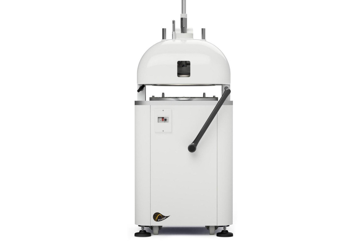 Механический (ручной) тестоделитель-округлитель SPA RP М 36 с делением и округлением на 36 частей. Агрегат с механическим управлением. Фазы прессования, разрезания и окончательная – сворачивание производятся при помощи рычагов, в то время как регуляция тестоформовочной камеры производится рукояткой по нумерованной шкале.