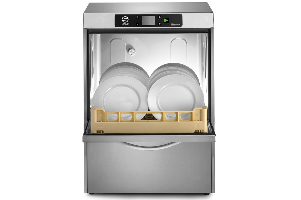 Двойная изоляция корпуса и дверцы машины снижает уровень шума и выделение тепла. Цельнотянутый моющий танк со скругленными углами. Цельнотянутые направляющие для кассет. Моющие и ополаскивающие рукава из нержавеющей стали.
