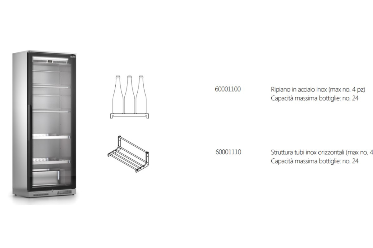 810х500x2100мм, 220В, 0,5 кВт, 140 кг., темп. +4...+16С переключение статическое/динамическое охлаждение, шкаф холодильный винный, встроенный агрегат, 1 дверь со стеклом, вместимость до 104 бутылок макс. (зависит от типа и кол-ве полок). В комплекте с полками 2 шт. тип полок WR5/01 (код 60001100) и 2 шт тип полок WT5/01 (код 60001110). Внутренняя подсветка LED. Уровень шума <43dba. Замок в двери, дверь со стеклом. Цвет шкафа и расположение петель дверцы уточнить при заказе