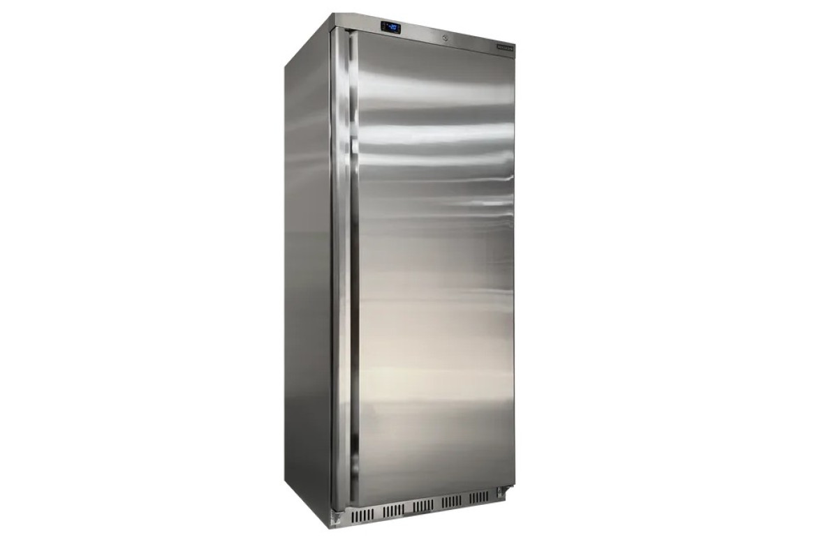 777x745x1895мм, 0,27кВт, 220В, -22...-18C, 518л, 94кг, 2 фиксированные полки, нержавеющая сталь, динамическое охлаждение, фреон R290, глухая дверь