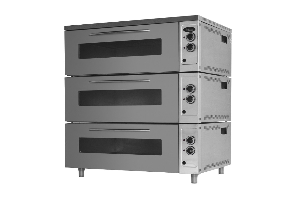 1230х935х1370 мм, 3 разборные секции, большая рабочая камера(высота камеры 230 мм), вместимость 6 противней 600х400 или 700х450 или 700х450, 2 высокоточных терморегулятора на каждую секцию 50 - 280 С, подсветка и пароувлажнение в каждой камере, двери секций с большим закаленным стеклом, 36 ТЭНов, усиленные двухходовые шарниры двери шкафа 16.2 кВт, 16,2 В, облицовка шкафа - полностью нержавеющая сталь, возможность установки шкафа в 4,5 ярусов, производительность за 1 выпечку - 72шт хлеб формовой (форма Л7), г.нетто 1230х935х1370 мм, 310 кг, г.брутто:1300х980х1500, 340кг