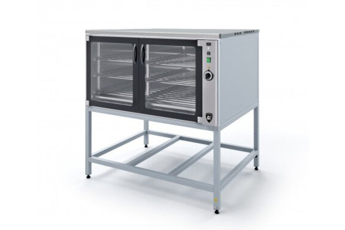 6 полок-решеток, стекл. дверь, лицо нерж., на подставке, с крышей, 1300х1025х1340 мм.; Количество ТЭНов, шт.2; Количество терморегуляторов, шт.1; Количество ванн, шт.2; Количество устанавливаемых хлебных форм 7, шт.12х6=72; Полезный объем камеры, м3 0,54; Номинальное напряжение, В 230; Номинальная потребляемая мощность, кВт 1,65; Объем воды, заливаемой в 1 ванну, л, не более 1; Уровень влажности в объеме расстоечной камеры, % 50 : 95; Диапазон регулирования температуры воздуха в рабочей камере, С 30 : 90; Время разогрева шкафа до рабочей температуры 60 С, мин, не более 20;Кабель для подключения в комплект поставки не входит и приобретается дополнительно.