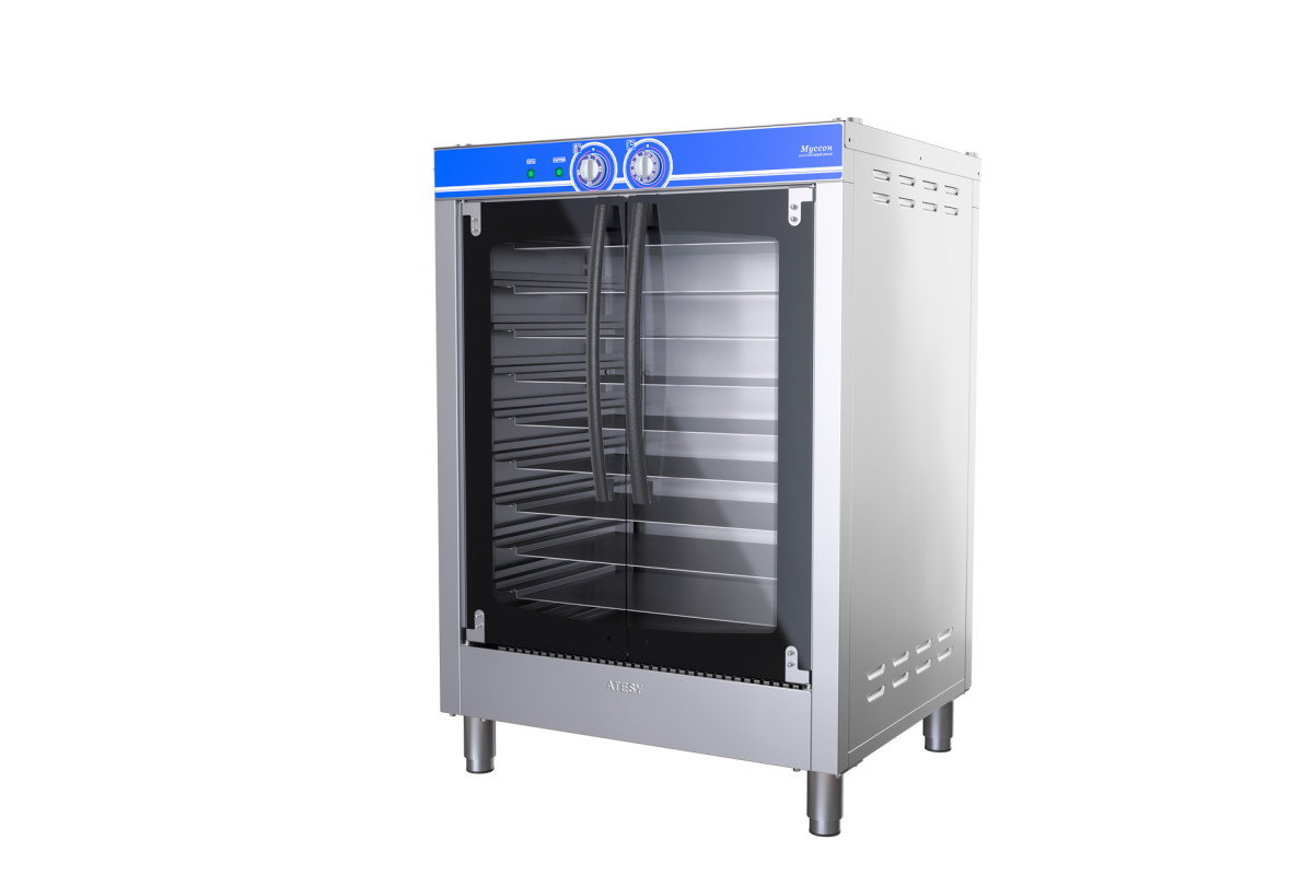 760x715x1130мм, 220В, 50Гц, 1,2 кВт, размер противней: 600x400мм или GN-1/1, 10 уровней, температура 30-85 гр.C