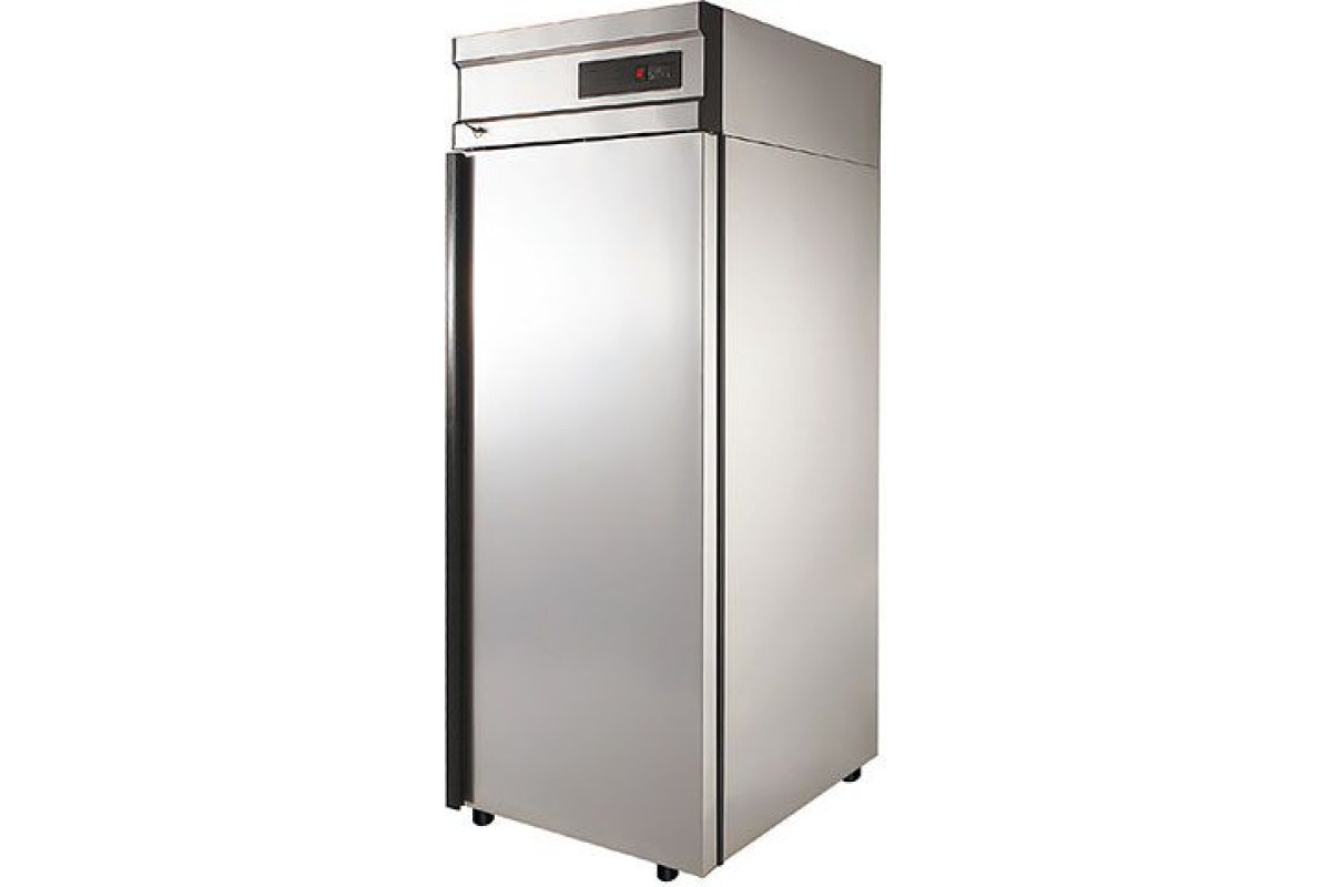 Холодильный шкаф POLAIR CM107-G предназначен для демонстрации и хранения продуктов на предприятиях общественного питания и торговли. Корпус изготовлен из нержавеющей стали снаружи и изнутри (кроме задней стенки) и обеспечивает механическую прочность и долговечность шкафа. Электронный контроль (встроенный блок), панель управления с ЖК-дисплеем для ввода и корректировки параметров работы и диагностики. Автоматическое оттаивание, слив конденсата для испарения в ванночку. Микровыключатель, срабатывающий на открытие дверки – отключение воздухоохладителя, включение подсветки. Агрегатный отсек в верхней части шкафа для более удобного обслуживания, динамическое охлаждение. Ножки, регулируемые по высоте.