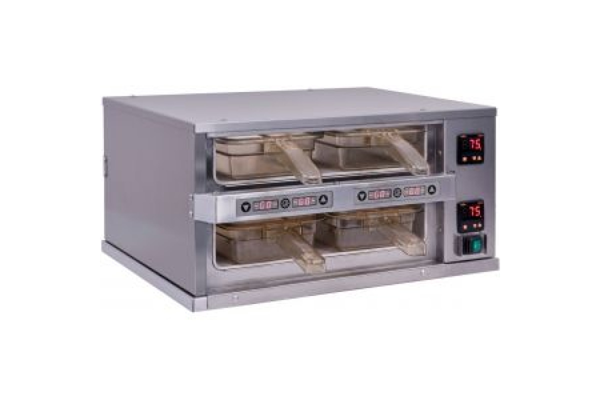 Мультихолдер с электронной регулировкой температуры, настольный, сухого типа, сквозного исполнения оснащен 2 отсеками для 2хGN1/3-65мм каждый (общая вместимость 4хGN1/3-65мм), расположенными в 2 ряда и 1 колонку. Время выхода на рабочий режим - 30мин. Изолированные отсеки предотвращают распространение запахов.