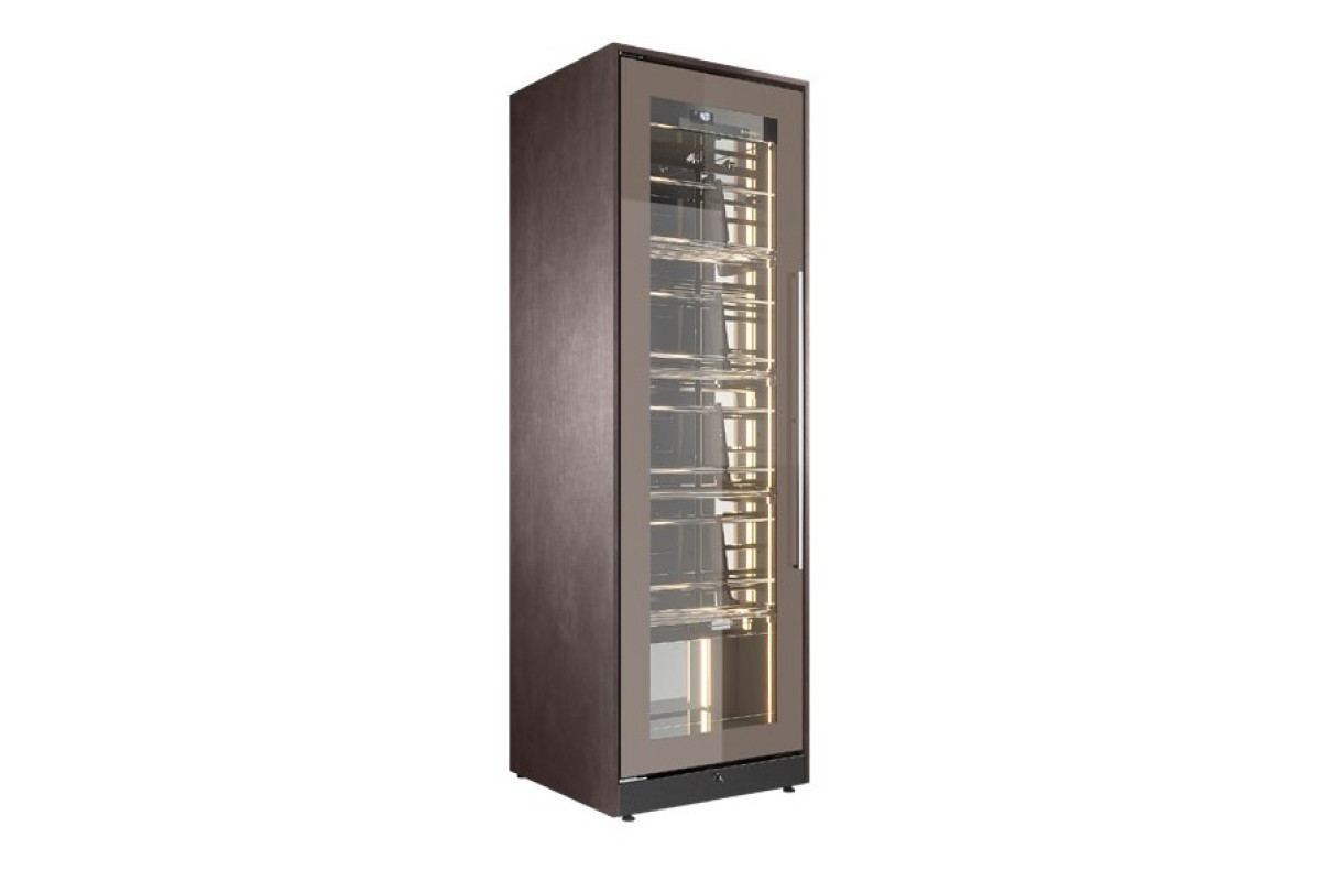Код WYN6S + KCC6S; 654x650x2040мм, 0,6кВт, 220В, +4С, вентилируемое охлаждение, без контроля влажности, встроенный агрегат, комплект 12 ящиков с бутылкамикороткой стороны, 48 бутылки max вместимость. Цвет черный.