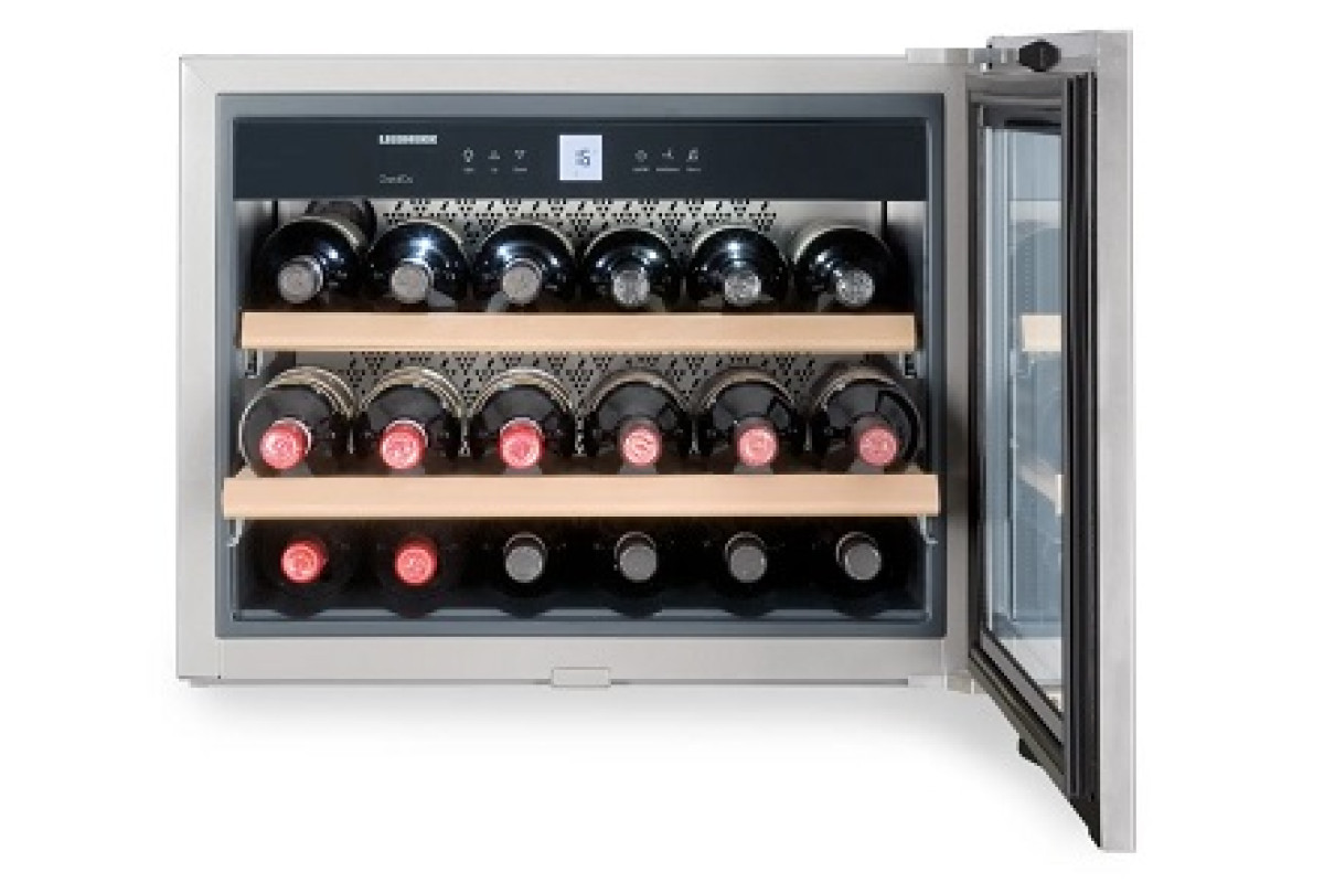 445*591*522мм, 130 кВтч/год., 220-240В, +5...+20С 1 темп. зона, стеклянная дверь с cеребристой окантовкой, 3 полки, 18 бут., 48/46л объем. Встраиваемый