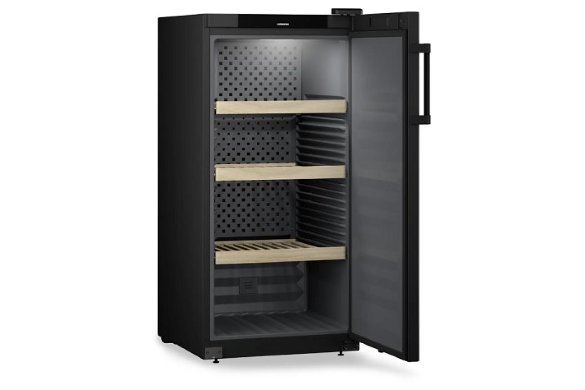 597х763х1284мм, 220В, 0,194 кВт-ч/24 ч, +5...+20С, 297л. вместимость по бутылкам Бордо до 141 шт., 4 полки, 1 температурная зона, цвет - черный