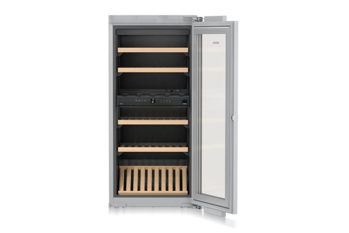 553*557*1218мм, 152 кВтч/год., 220-240В, +5...+20С 2 темп. зоны, стеклянная дверь с черной окантовкой, 6 полок, 48 бут., 183/158л объем. Встраиваемый