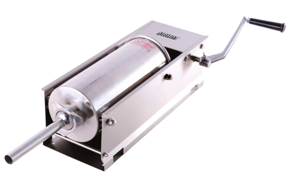 6 месяцевШприц колбасный AIRHOT SH-5 — это горизонтальный настольный аппарат объемом 5 литров, предназначенный для эффективного наполнения оболочек фаршем при производстве колбас, сосисок и сарделек. Его ключевое преимущество — простота конструкции и надежность, что делает его идеальным решением для небольших мясных цехов, фермерских хозяйств и пищевых производств, где важны производительность и удобство работы. Горизонтальное расположение цилиндра обеспечивает равномерную подачу фарша без образования пустот, что гарантирует высокое качество готовой продукции.
