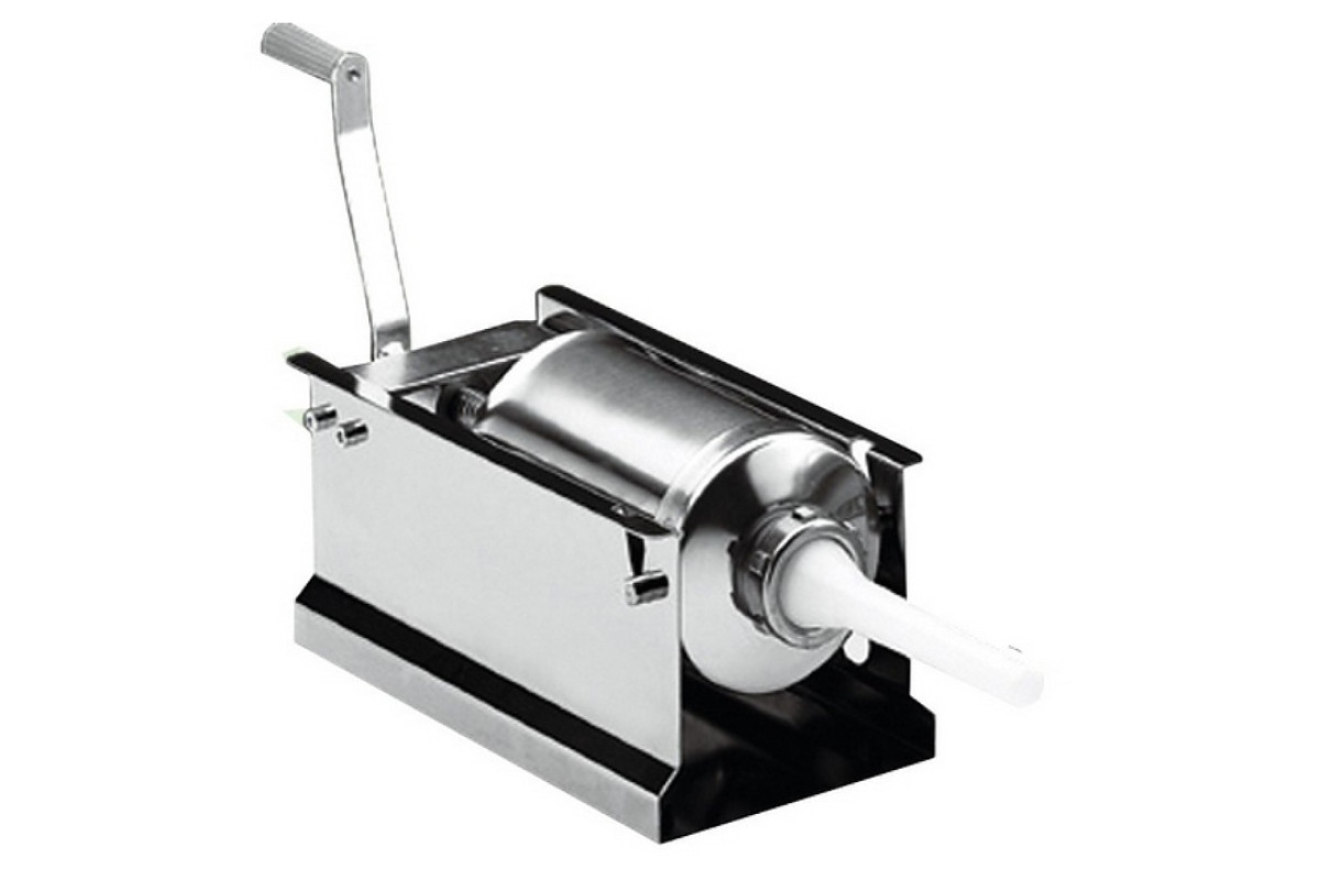 Шприц колбасный APACH ASF3 оснащен одной скоростью работы, что обеспечивает стабильный процесс наполнения оболочек. Корпус и рабочие элементы выполнены из нержавеющей стали, что гарантирует гигиеничность и долговечность оборудования. В комплектацию входят четыре насадки разного диаметра: 10,50 мм, 19,50 мм, 25 мм и 34,50 мм, что позволяет работать с широким ассортиментом оболочек и производить колбасные изделия различного формата.