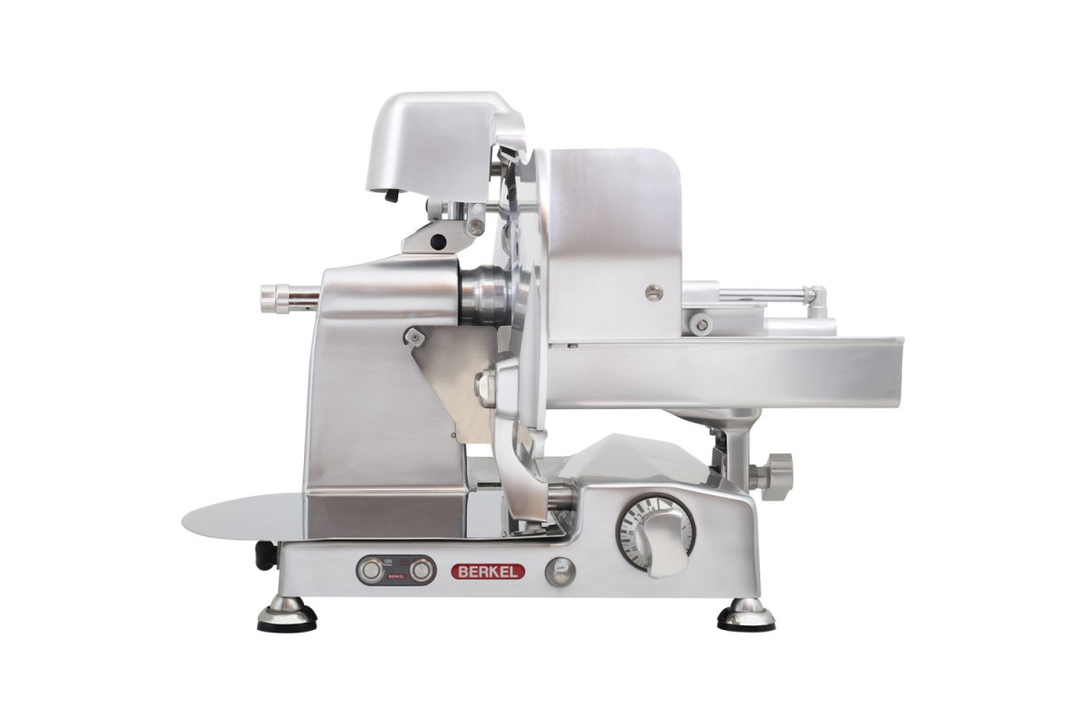 Диаметр ножа 350 мм, Передача редукторная, ручной, толщина нарезки 0-25 мм. Вертикальный слайсер для нарезки мяса. Высококачественный слайсер для профессионального использования для интенсивной работы в супермаркетах и на небольших производствах. Детали из алюминия и нержавеющей стали, корпус и ручки выполнены из анодированного алюминия. Специальная форма корпуса позволяет жидкости и грязи собираться в одном месте, что облегчает очистку. Встроенное заточное устройство.