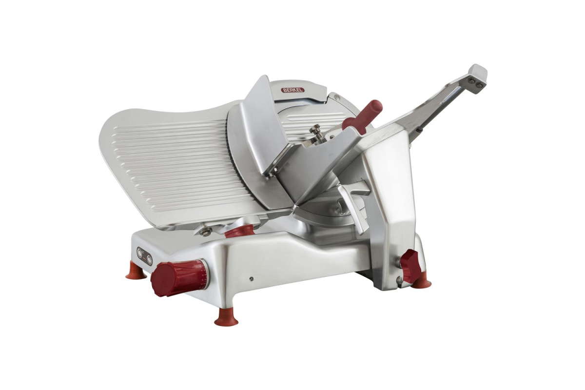 Диаметр ножа 370 мм, Передача редукторная, ручной, толщина нарезки 0-14 мм. Компактный слайсер для профессионального использования для интенсивной работы в супермаркетах и на небольших производствах. Детали из алюминия и нержавеющей стали, корпус выполнен из анодированного алюминия, ручки выполнены из пластика. Специальная форма корпуса позволяет жидкости и грязи собираться в одном месте, что облегчает очистку. Встроенное заточное устройство.