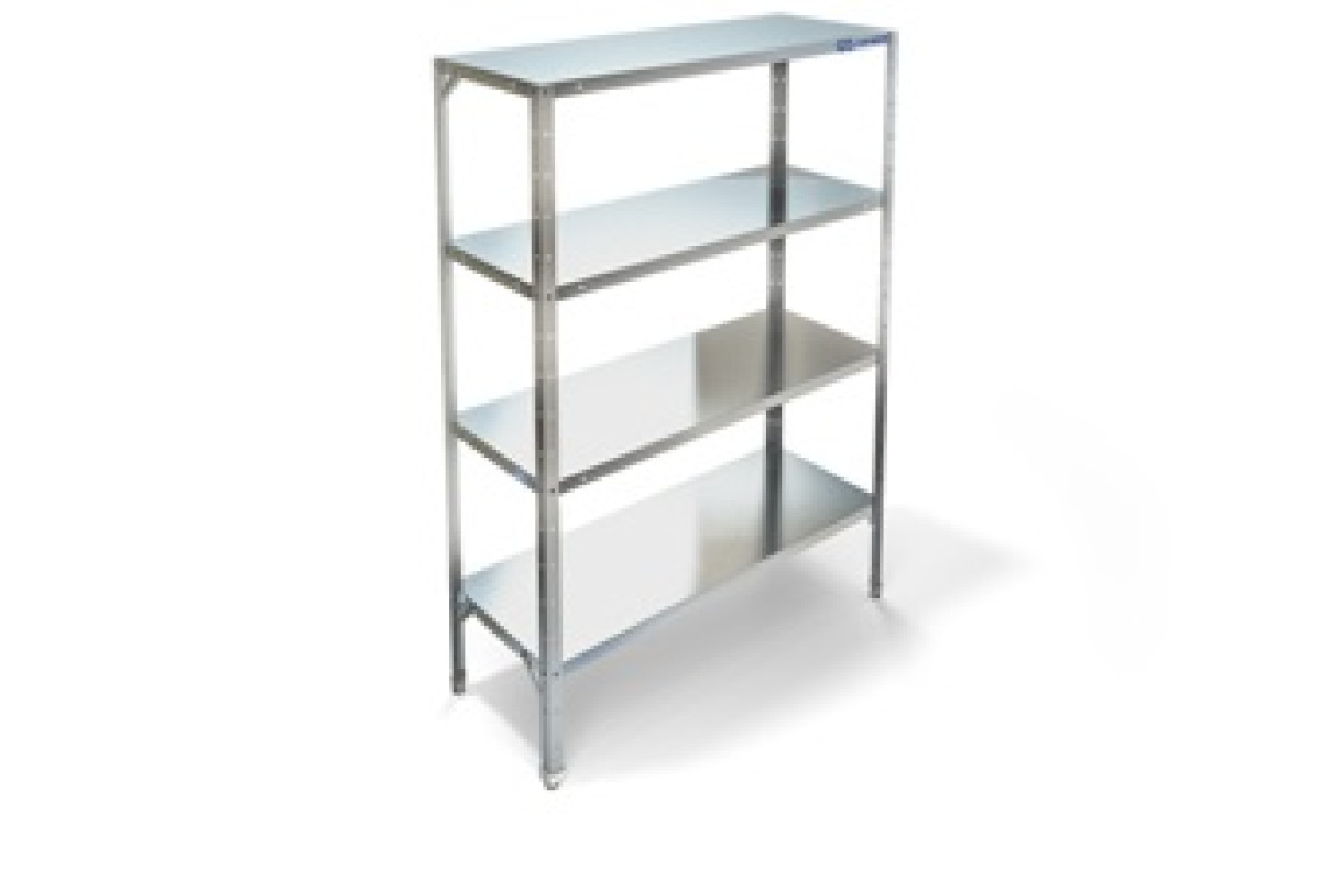 1,51500х500х1830, каркас разборный, стойки из оцинкованного уголка 40х40 из, толщиной 1,5 мм, 4 полки сплошные из стали AISI 430, толщиной 0,8 ммНагрузка на одну полку- 100 кг- равнораспределенная.