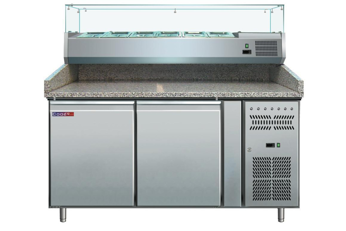 Холодильный стол для пиццы COOLEQ PZ2600TN-VRX380 выполнен из нержавеющей стали. В стол встроен холодильный шкаф с искусственным охлаждением внутреннего объема.