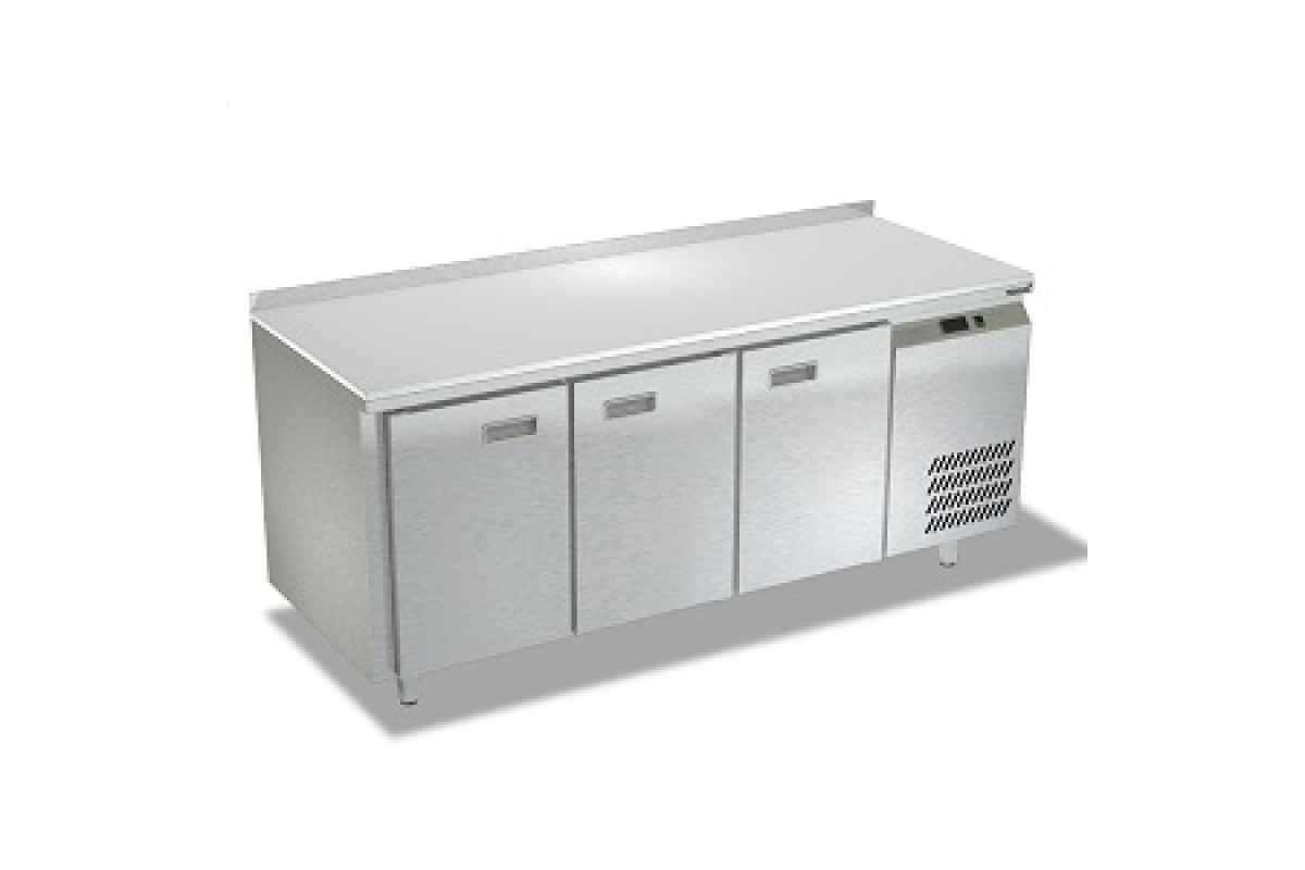 1835х600х850мм, Охлаждаемый стол с бортом высотой 50мм, боковое расположение агрегата. Столешница полипропилен толщиной 20мм, корпус из нержавеющей стали марки AISI 430. Задняя панель и дно из оцинкованной стали. 3 двери. Температурный режим -2...+10, напряжение 220В, мощность 460Вт, внутренний объем стола 435л, полезный объем стола 333л. Компрессор (Испания). Хладон R-134. Петля доводчик (Польша). Полка решетка регулируемая по высоте с шагом - 45мм, гастронормированная, нагрузка 35кг. Нога опорная круглая, регулировка 50мм (Италия). Поставляется в собранном виде.