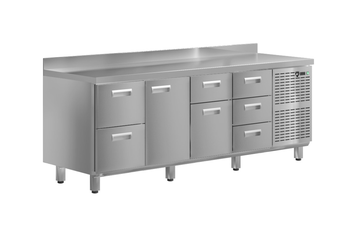 2200х700х850мм. Диапазон температур -18 C, условия окружающей среды (t,C/вл-ть, %): до +32/до 60, тип охлаждения: динамический. Тип оттайки: естественными теплопритоками. Боковое расположение агрегата. Наличие борта.(1 секция-ящики 2шт., 2 секция-дверь, 3 секция-маленький ящик 1шт.,большой ящик 1шт.., 4 секция - ящики 3шт. )