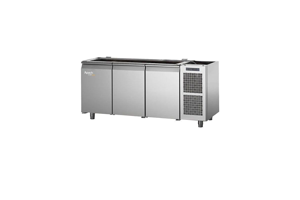 2005х780х810 мм, 155 кг, 0,25 кВт, 220 В, от -2 до +8С, энергетический класс В, нерж сталь AISI 304, толщина изоляции 60 мм, без столешницы, 3 глухие двери, R290, в комплекте: 12 пар направляющих EN600x400 мм, с агрегатом