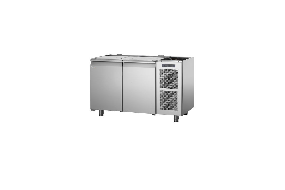 1300х680х810 мм, 120 кг, 0,25 кВт, 220 В, от -2 до +8С, энергетический класс А, нерж сталь AISI 304, толщина изоляции 60 мм, без столешницы, 2 глухие двери, R290, в комплекте: 2 полки GN1/1, 2 пары направляющих, с агрегатом