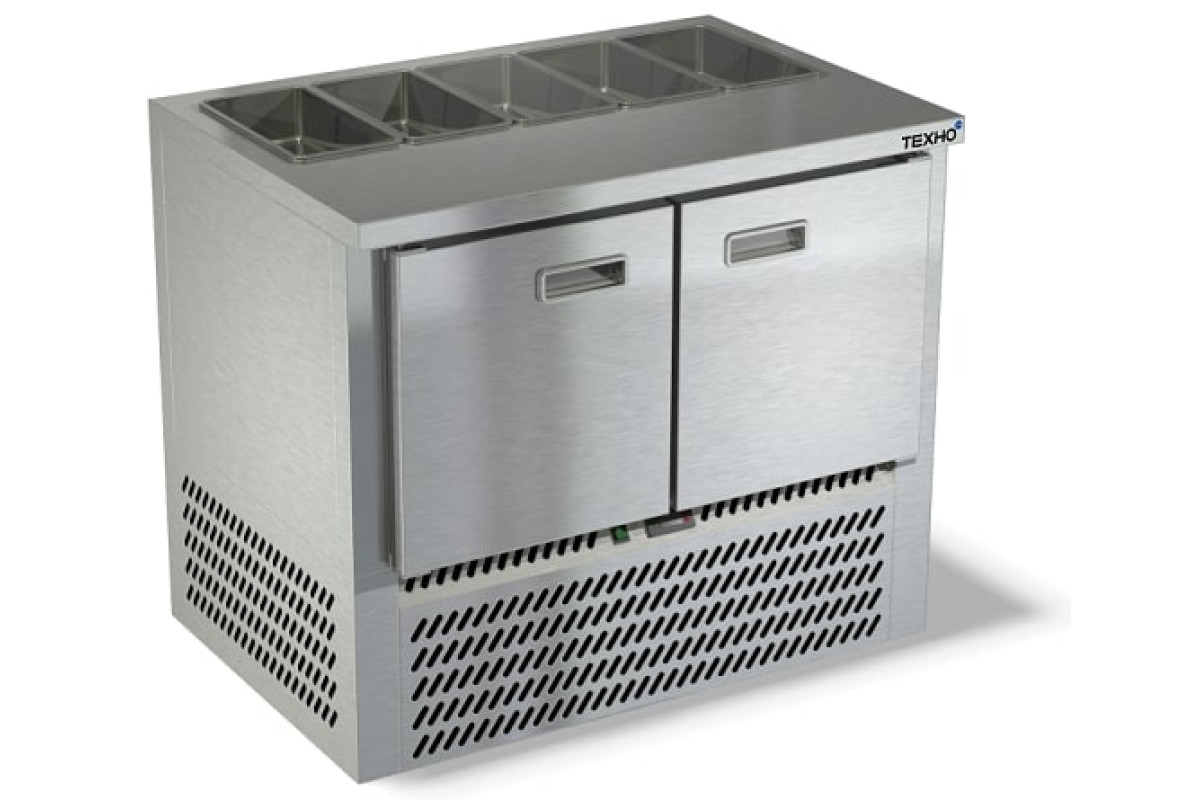 1000х700х850мм, Охлаждаемый стол без борта для салатов, без крышки, нижнее расположение агрегата. Столешница и корпус из нержавеющей стали марки AISI 430. Задняя панель и дно из оцинкованной стали. 2 двери. Температурный режим +2...+10, напряжение 220В, мощность 150Вт, внутренний объем стола 220л, в зону под гастроёмкости помещается 5 GN 1/3 глубиной 150мм, полезный объём стола 140л. Петля доводчик (Польша). Полка решетка регулируемая по высоте с шагом - 45мм, гастронормированная, нагрузка 35кг. Нога опорная, регулировка 25мм. Поставляется в собранном виде.