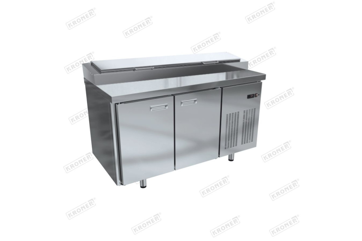 Стол холодильный для пиццы используется на предприятиях общественного питания и торговли для раскатки теста и обработки ингредиентов, используемых для приготовления пиццы, салатов и других блюд, а также для охлаждения и хранения продуктов и напитков. Благодаря размщению гастроемкостей на подиуме, все охлажденные ингридиенты находятся у повара под рукой. Цельнозаливные корпус, столешница и двери изготовлены из шлифованной нержавеющей стали и обеспечивают механическую прочность, отличную термоизоляцию и продолжительный срок эксплуатации изделия (долговечность).