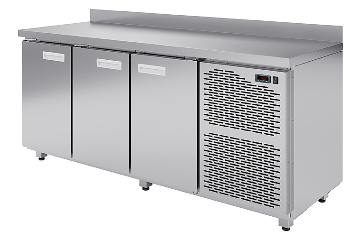 Конструкция стола выполнена из пищевой нержавеющей стали, устойчивой к механическим воздействиям, коррозии и агрессивным средам. Прочная столешница с задним бортом и три отдельные холодильные секции с индивидуальными распашными дверцами создают продуманное и удобное рабочее место. Боковое расположение агрегата не только экономит пространство, но и облегчает доступ для сервисного обслуживания. Модель отличается надежностью, эргономикой и долговечностью, характерной для профессионального кухонного оборудования.