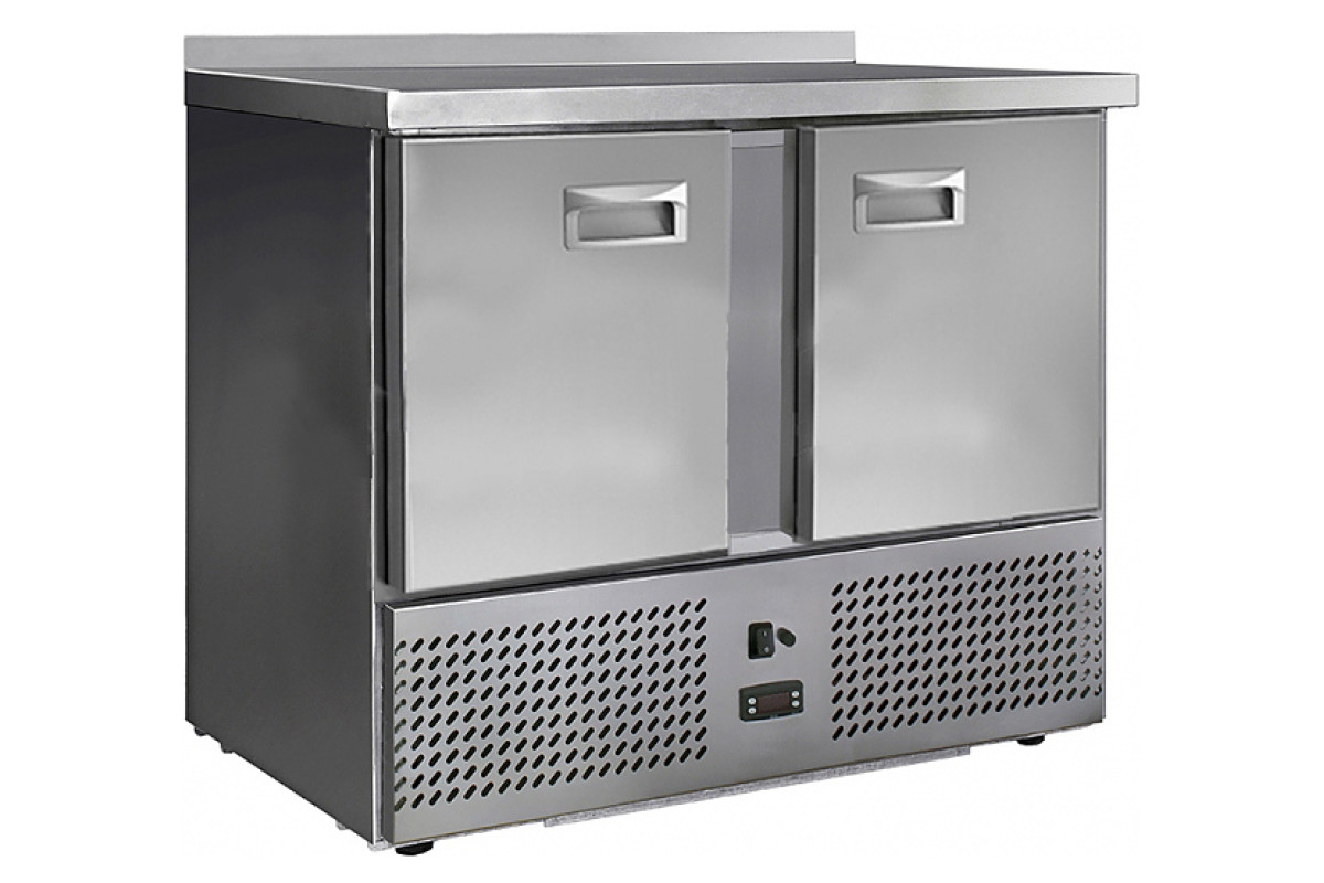 Холодильный стол с нижним расположением агрегата выполнен из высококачественной пищевой нержавеющей стали. Столы могут производиться с распашными дверями (ящиками), которые имеют надежные петли (для ящиков направляющие) с опцией доводчиков, что обеспечивает гарантированное закрытие и поддержание заданной температуры в рабочем объеме стола. Используется электрический блок управления с функцией автоматической оттайки. Передняя панель моторного отсека имеет большую площадь перфорации, что позволяет обеспечить холодильному агрегату поступление воздуха для охлаждения. Пространство между внутренней и наружной стенкой заполнено пеной-теплоизолятором.