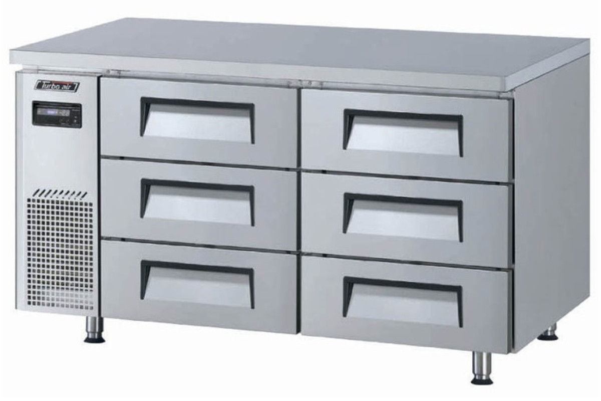 КОРЕЯ, РЕСПУБЛИКАХолодильник (стол) модель KUR15-3D-6 арт. KUR15-3D-6-700, 1500x700x850мм, Объем 425л, -3…+8°С, 185Вт, нерж сталь, электронное управление, подогрев корпуса, 6 ящиков GN1/1 глубиной 100мм, боковой агрегат, динамическое охлаждение, R134/R404, 4 регулируемые ножки, 220В, 116кг