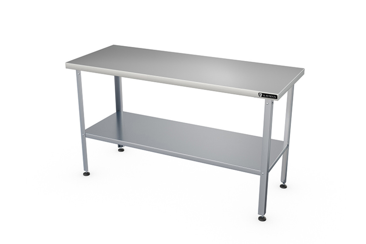 900х700х870мм, нагрузка на столешниц 94,5кг, без борта, столешница нерж. сталь AISI430 0,8мм, подложка столешницы ДСП 16мм. Каркас оцинк. сталь толщина металла 1,2мм, уголок 40х40мм. Полка сплошная. Отсутствие борта позволяет располагать стол в любом месте помещения и осуществлять работу на нем с любой стороны и может быть установлен в центре кухни. Регулируемые ножки 20мм. Вес 18,5кг. Изделие разборное и поставляется в удобной упаковке.