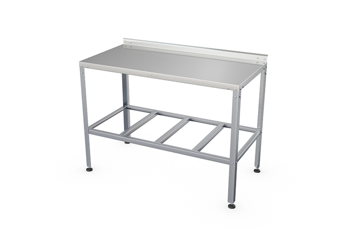 1400х600х870мм, столешница - AISI430, каркас - оцинк.сталь, полка-решетка, 1 борт 50мм, углы столешницы - конверт