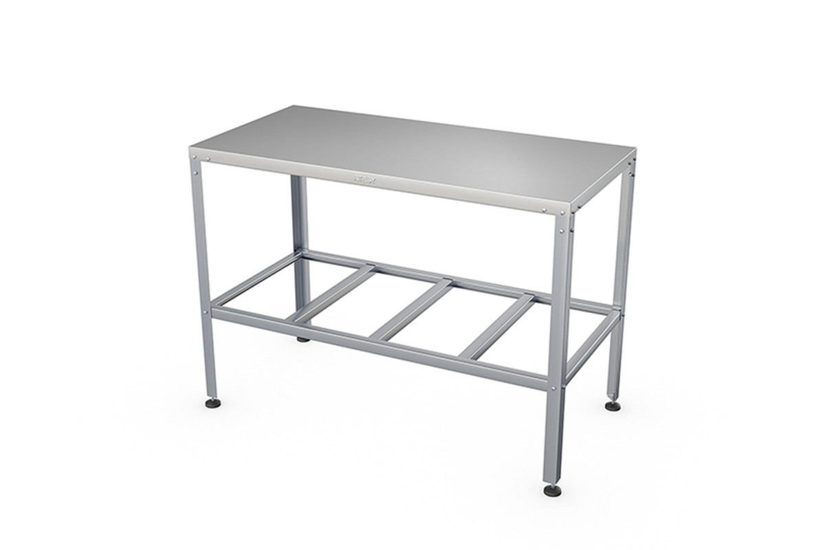 1200х600х870мм, столешница - AISI430, каркас - оцинк.сталь, полка-решетка, без борта, углы столешницы - конверт