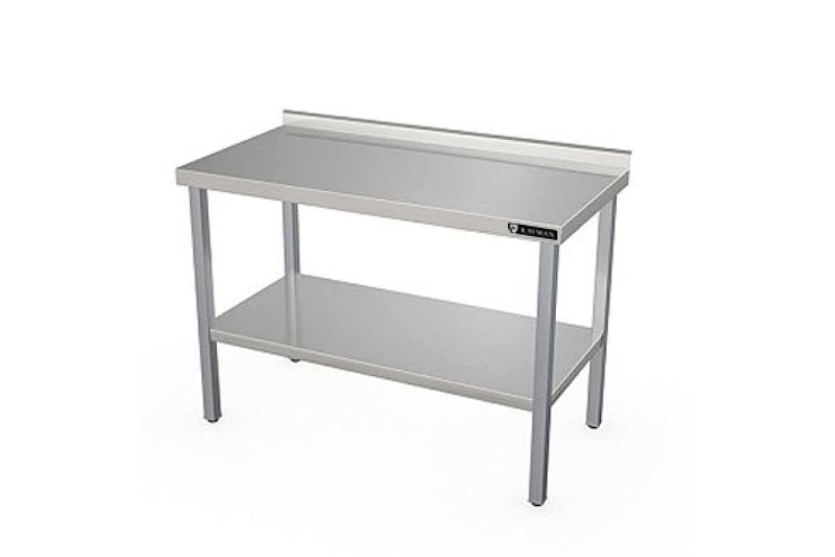 1500х600х870мм, нагрузка на столешницу 135кг, 1 борт, столешница нерж. сталь AISI304 0,8мм, подложка столешницы ДСП 16мм, ножки нержавеющая сталь AISI 201, зеркальная, 1,5мм, профиль ножек квадратная труба 40х40мм. Сплошная полка из нержавеющей стали AISI304. Регулируемые ножки 20мм. Вес 39кг. Для усиления прочности снизу полки установлен швеллер. Изделие разборное и поставляется в удобной упаковке, что облегчает транспортировку и хранение.