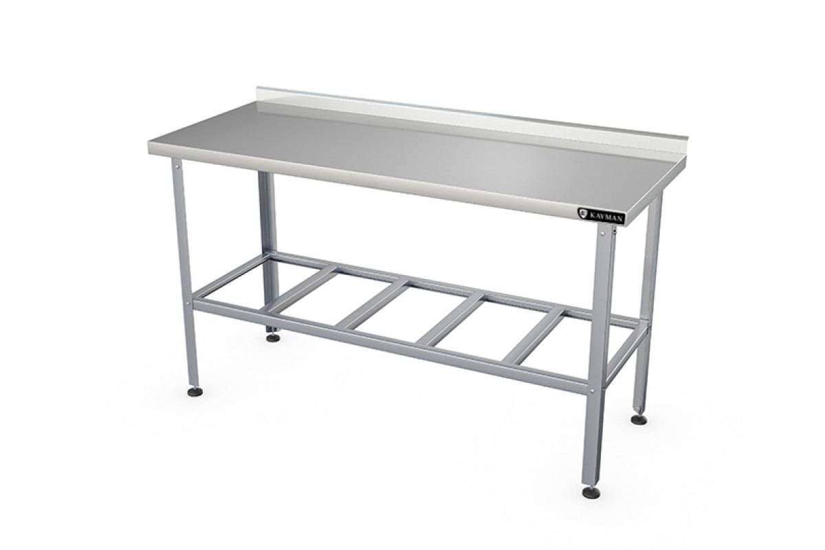 1000х800х870мм, нагрузка на столешницу 120кг, 1 борт, столешница нерж. сталь AISI430 0,8мм, подложка столешницы ДСП 16мм, каркас оцинк. сталь 1,2мм, уголок 40х40мм. Полка-решетка из оцинк. стали. Регулируемые ножки 20мм. Вес 21,9кг. Столешница изготовлена из легированной стали. Она укреплена с внутренней стороны листом древесно-стружечной плиты, что увеличивает прочность и исключает прогиб столешницы. Стойки стола выполнены в виде уголка. Стол имеет полку-решётку. Ножки имеют пластиковую опорную часть и регулируются по высоте. Изделие разборное и поставляется в удобной упаковке, что облегчает транспортировку и хранение.