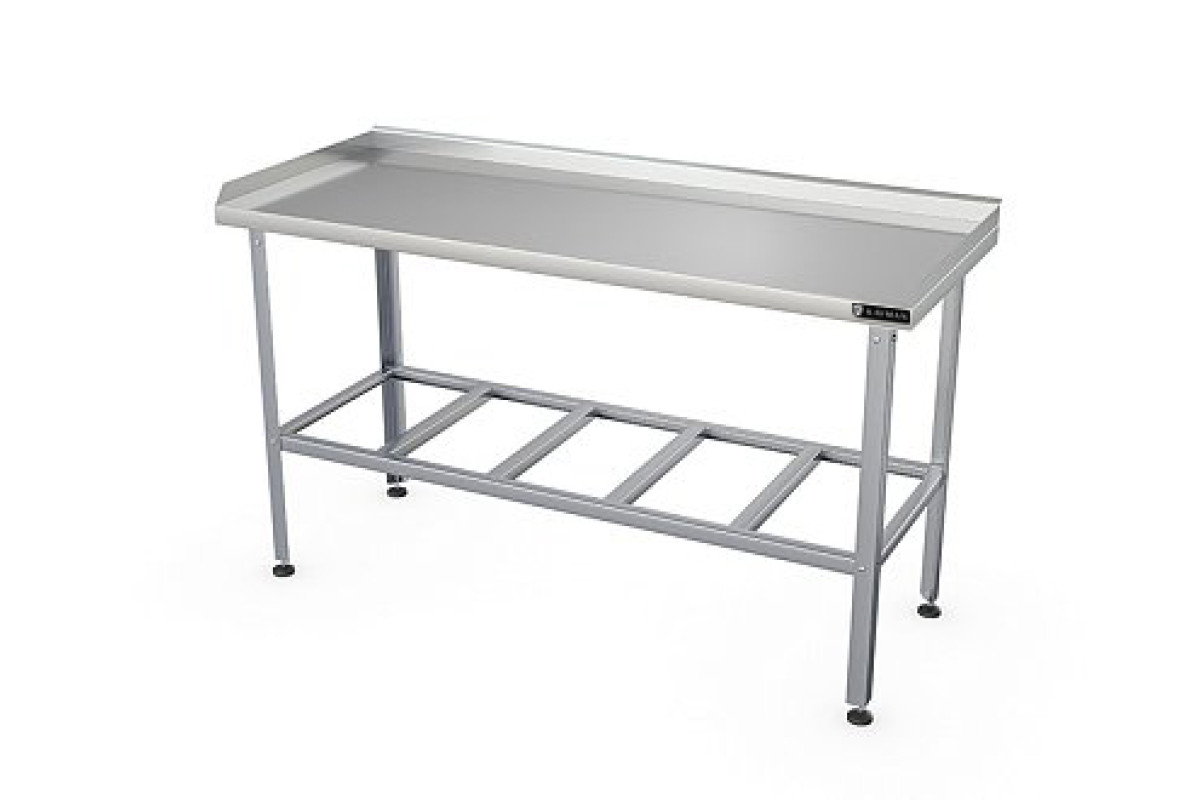 800х700х870мм, нагрузка на столешницу 84кг, 3 борта, высота борта 50мм, столешница нерж. сталь AISI430 0,8мм, подложка столешницы ДСП 16мм. Каркас оцинкованная сталь 1,2мм, уголок 40х40мм. Полка -решетка из оцинкованной стали. Регулируемые ножки 20мм. Вес 17,3кг. Наличие борта с трех сторон позволяет работать с мукой, изделиями из теста,-А также для выполнять обвалку мясных и рыбных блюд, исключая попадание остатков обрабатываемой продукции на пол, что значительно упрощает уборку помещения. Изделие разборное и поставляется в удобной упаковке, что облегчает транспортировку и хранение.