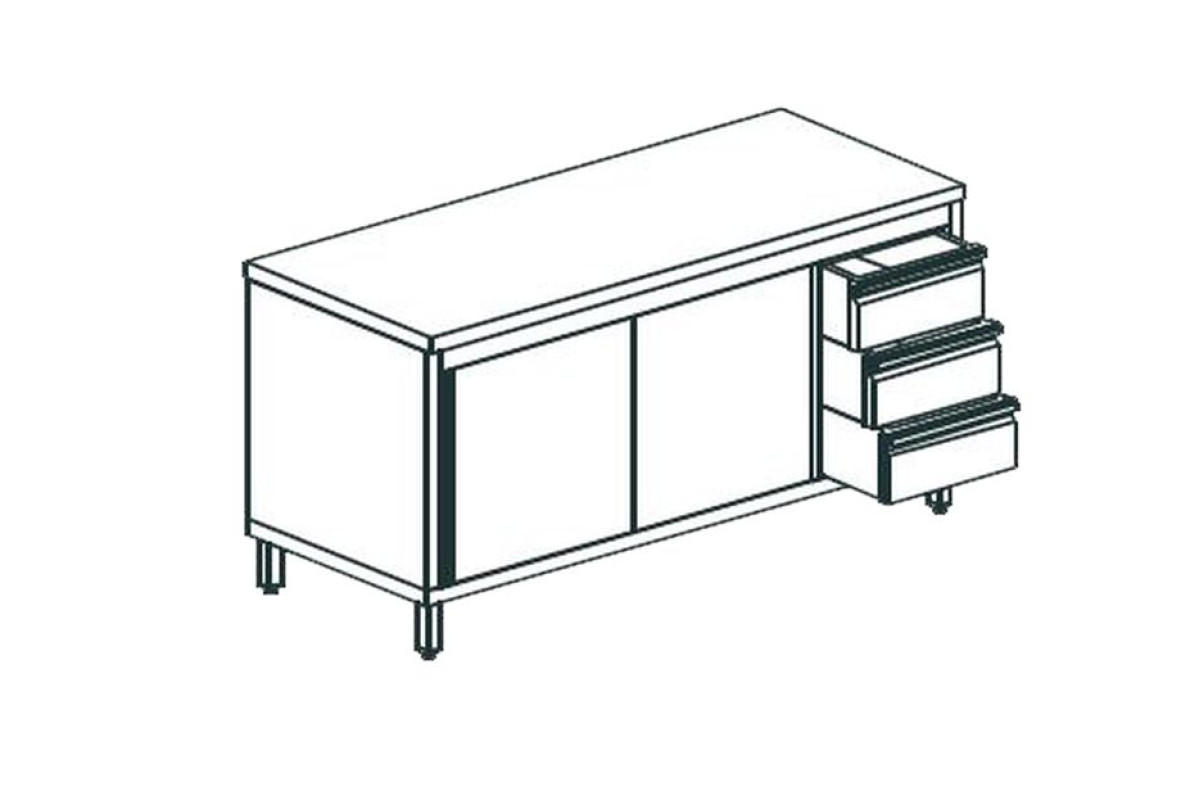 1200х700х900 мм, полка по центру, распашные двери, ящики справа, нерж сталь AISI 304