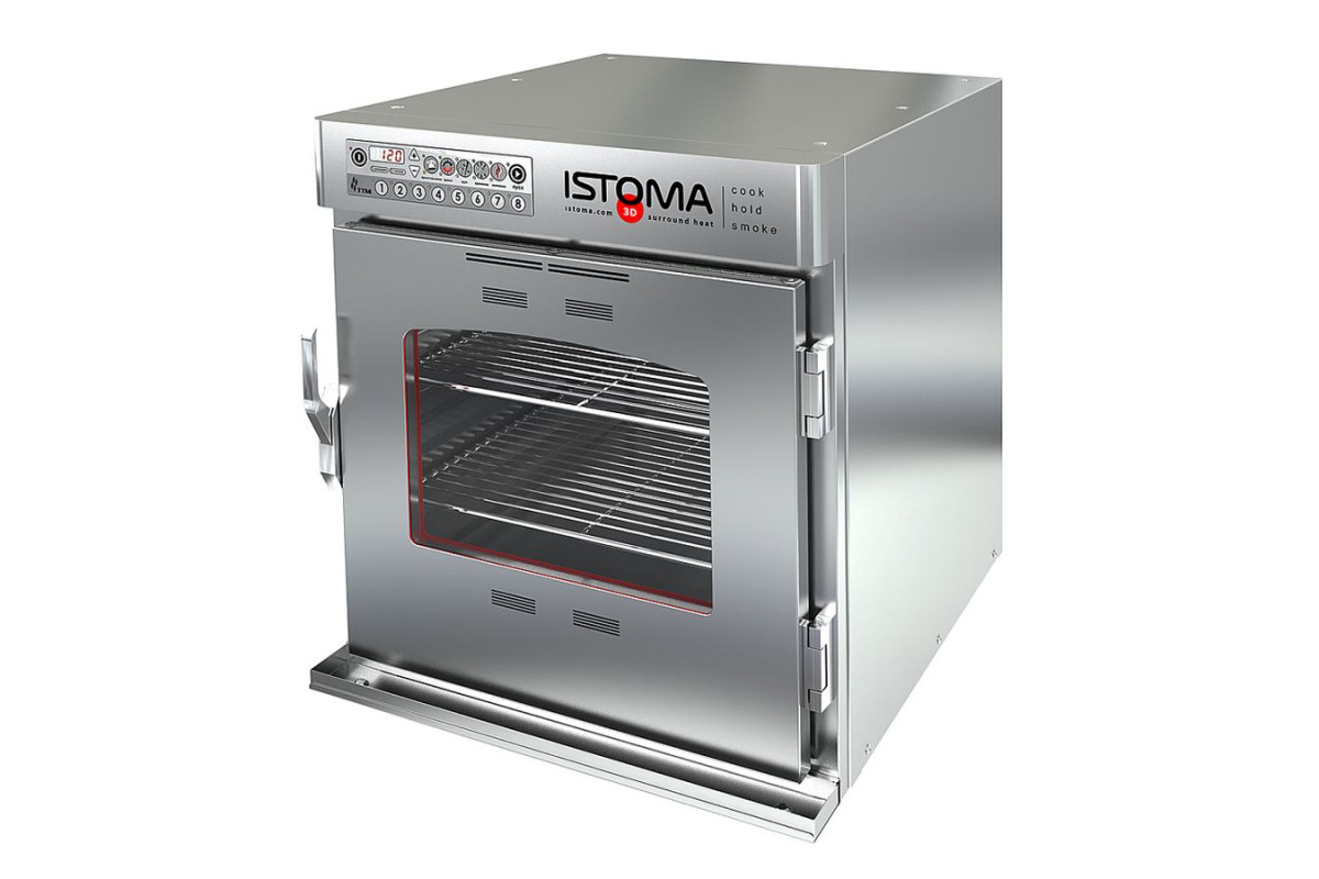 Печь ISTOMA-EM имеет электронное управление с цифровым дисплеем и датчик-щуп. Режимы приготовления, хранения или копчения программируются с помощью 8 кнопок меню и сохраняются в памяти. Сохраняются следующие параметры: температура приготовления до 140 °C и хранения до 95 °C; время приготовления до 24 часов, время копчения до 1,5 часов, температура щупа до 95 °C. При достижении установленных параметров печь автоматически переходит из режима приготовления в режим хранения. Во время приготовления с использованием датчика-щупа печь автоматически перейдет в режим хранения при достижении заданной температуры внутри продукта. Печь позволяет осуществлять горячее и холодное копчение. Дверца со стеклом имеет специальные отверстия в верхней и нижней части для циркуляции воздуха, которые рекомендуется держать открытыми во время приготовления при максимальной загрузке.