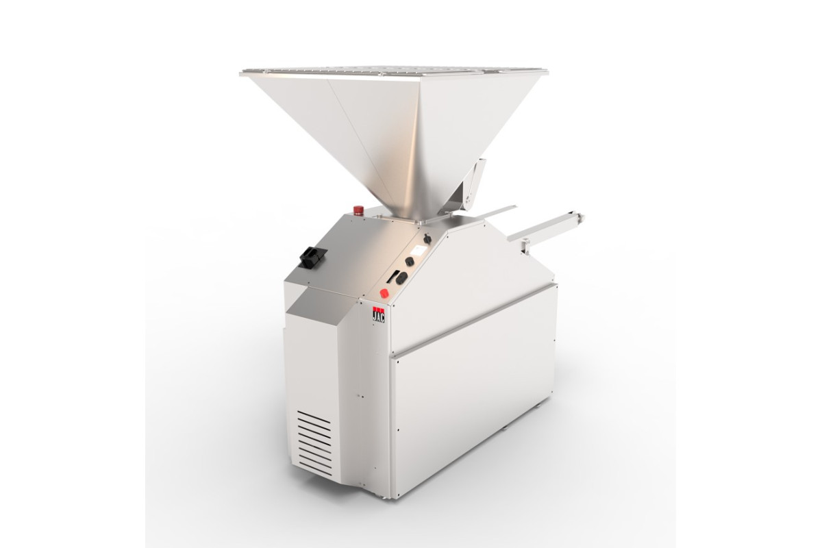 1802х563 (1008 ширина бункера)х1701мм, 2,2кВт, 380В, регулируемая скорость, 960-2000 шт/ч, бункер с тефлоновым покрытием на 200кг, поршень120мм (диапазон деления 90-1000 гр.), корпус из нерж. стали