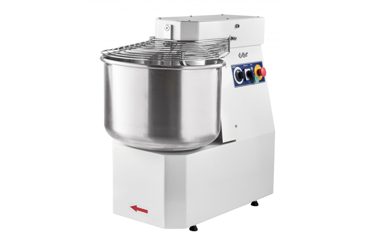 - Корпус выполнен из высококачественной конструкционной стали с полимерным покрытием, металлические детали машины, контактирующие с продуктом во время замеса (спираль, дежа, нож) - из нержавеющей стали AISI 304.