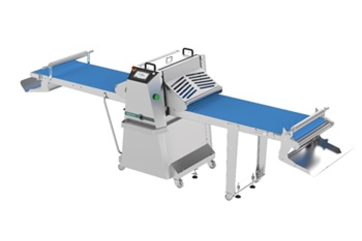 3480x1040x2090мм (в рабочем состоянии ), стол 650х1400 мм, 230В, 2 кВт. Тестораскаточная машина с основой на колёсах, изготовлена из нержавеющей стали, полностью автоматизирована. С автоматическими наматывающим устройством и устройством для посыпки мукой. Складные и съёмные рабочие столы. Сенсорный дисплей 7 со 100-та рабочими программами. Защитные покрытия цилиндров оборудованы микровыключателем безопасности и газовой пружиной. Быстрая система натяжения и открепления лент. Скребки с быстрой системой открепления QR (Quick Release), патент Rollmatic. Ящик для сбора муки оборудован микровыключателем безопасности. Автоматический съемный мукоподсыпатель в комплекте. Автоматический намонтчик на скалку так же входит в комплектацию.