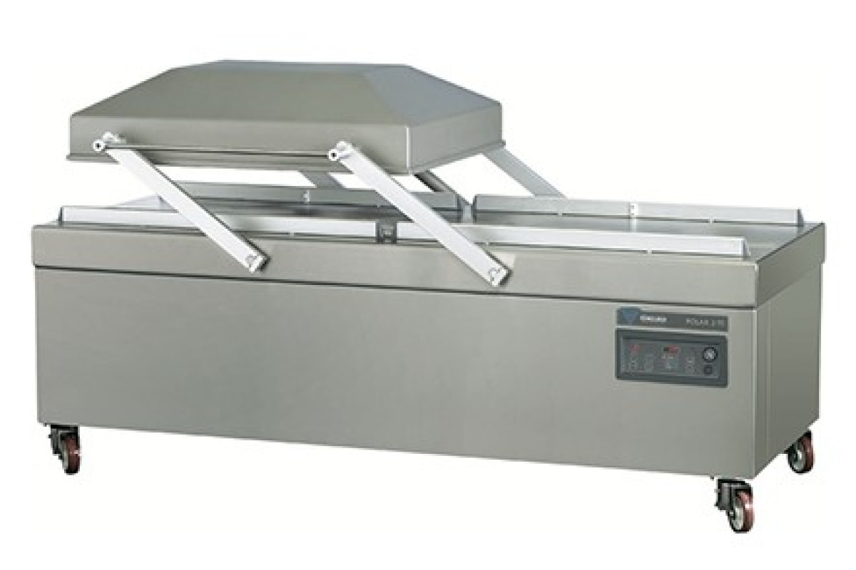 Габариты упаковщика 2420x1210x1130 мм, 2*(1100*850*280) мм (рабочий размер камеры), производительность насоса 302 м3 / ч, длина сварочной планки 4*1100 мм, машинный цикл 15-40 сек, напольный, двухкамерный. Цифровая панель управления, 10 изменяемых программ, функция мягкого обжима, функция обслуживания насоса, тестировочные программы, безшовные камеры из нержавеющей стали, корпус из нержавеющей стали, перекидная крышка из нержавеющей стали). Предназначен для оптимальной вакуумной упаковки напревзойденого качества и надежности. Высокая гигиеничность, плоские рабочие поверхности и эргономичный дизайн. В комплекте с опцией раздельная запайка - обрезка