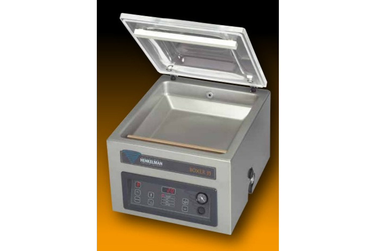 абариты упаковщика 550 x 440 x 450 мм, 350*415*150 мм (рабочий размер камеры), производительность насоса 16 м3/час, длина сварочной планки 350 мм, 230 В, настольный, цифровая панель управления, 10 изменяемых программ, функция мягкого обжима, функция обслуживания насоса, тестировочные программы, безшовная камера из нержавеющей стали, корпус из нержавеющей стали, прозрачная крышка, с газацией