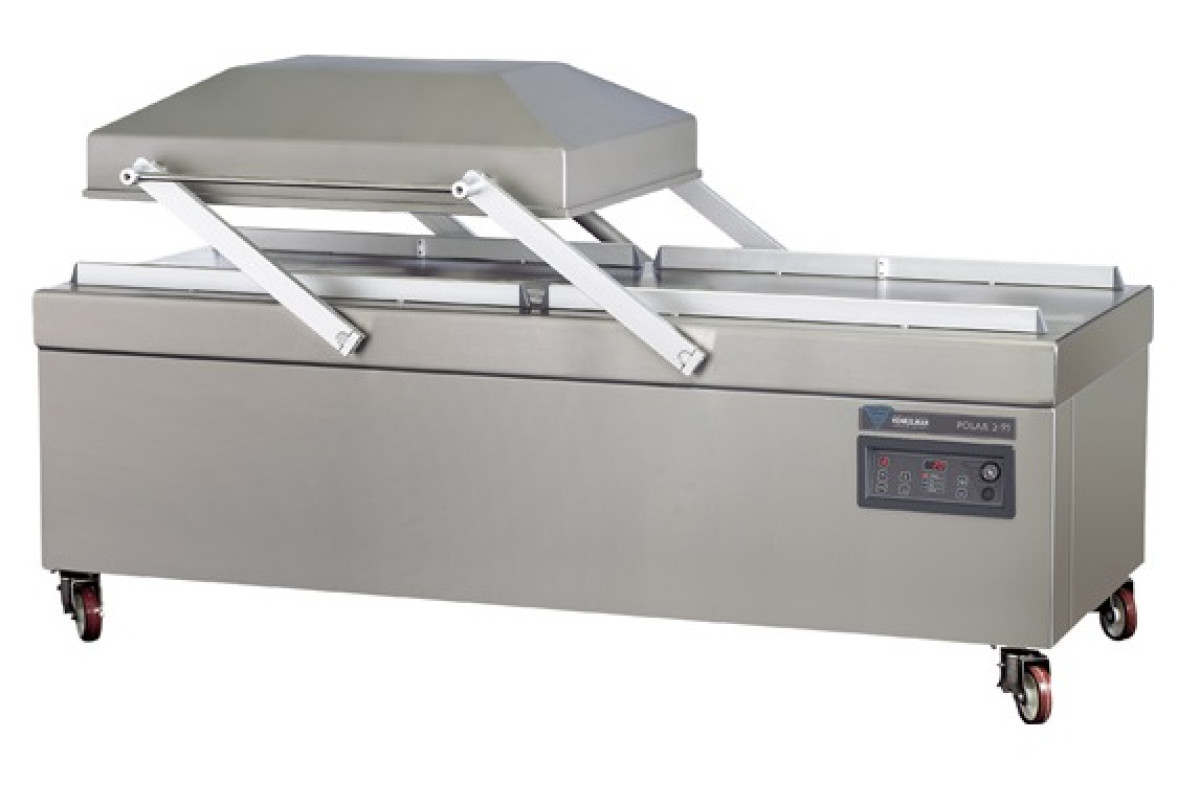 Габариты упаковщика 2420x1210x1130 мм, 2*(1100*850*280) мм (рабочий размер камеры), производительность насоса 302 м3 / ч, длина сварочной планки 4*1100 мм, машинный цикл 15-40 сек, напольный, двухкамерный. Цифровая панель управления, 10 изменяемых программ, функция мягкого обжима, функция обслуживания насоса, тестировочные программы, безшовные камеры из нержавеющей стали, корпус из нержавеющей стали, перекидная крышка из нержавеющей стали). Предназначен для оптимальной вакуумной упаковки напревзойденого качества и надежности. Высокая гигиеничность, плоские рабочие поверхности и эргономичный дизайн.