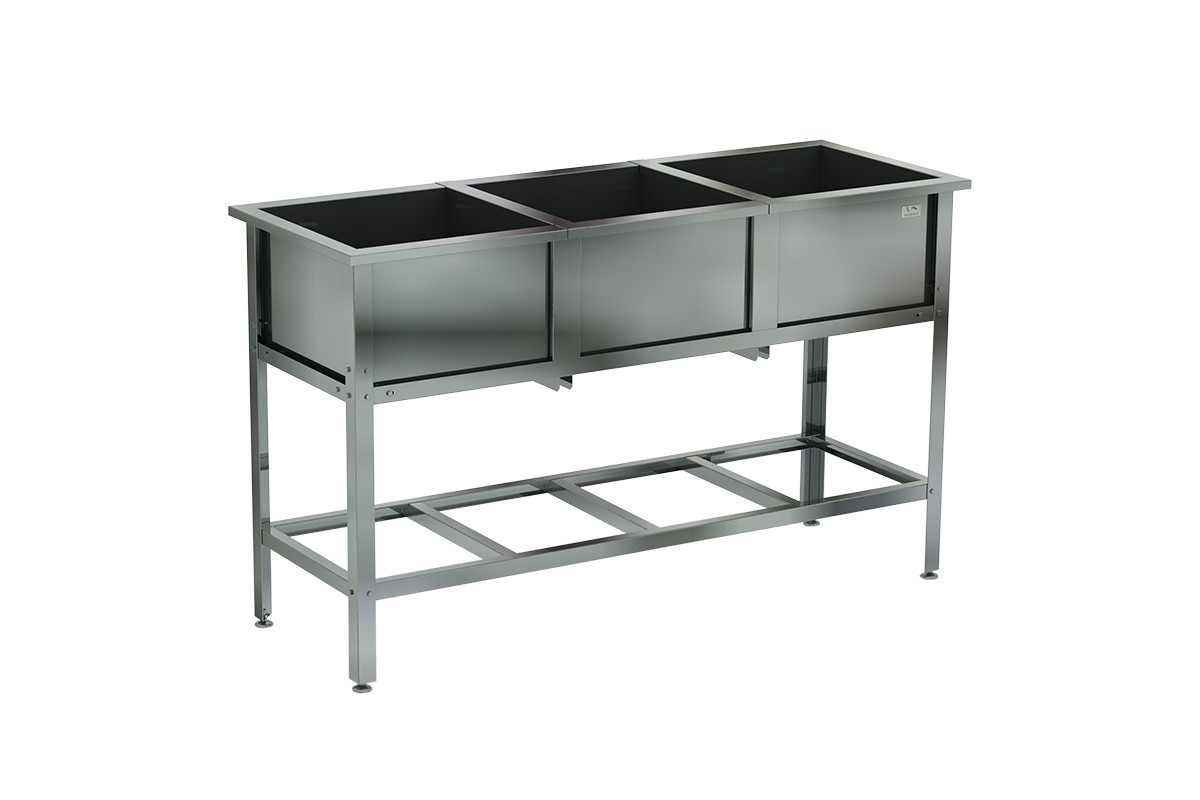 1450х530х870мм, Ванна моечная трехсекционная сварная (ёмкость - нерж. сталь aisi 430, каркас уголок оцинк. сталь), (ёмкость 430х430х300)