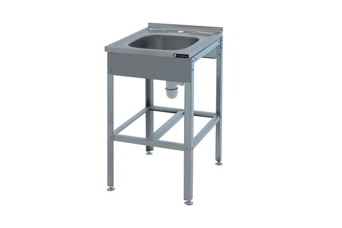 Габариты 500х600х870мм, габариты ванны цельнотянутой 400х400х100мм, диаметр сливного отверстия 48мм, высота пристенного борта 20мм, отверстие под смеситель, материал ванны AISI 304 0,5мм, материал ванны AISI 430 0,5мм, каркас уголок 40х40мм оцинкованная сталь 1,2мм , регулируемые ножки 20мм с пластиковым основанием, вес 11,2мм. Каркас разборный. Ванна укомплектована сливным сифоном с гидрозатвором.