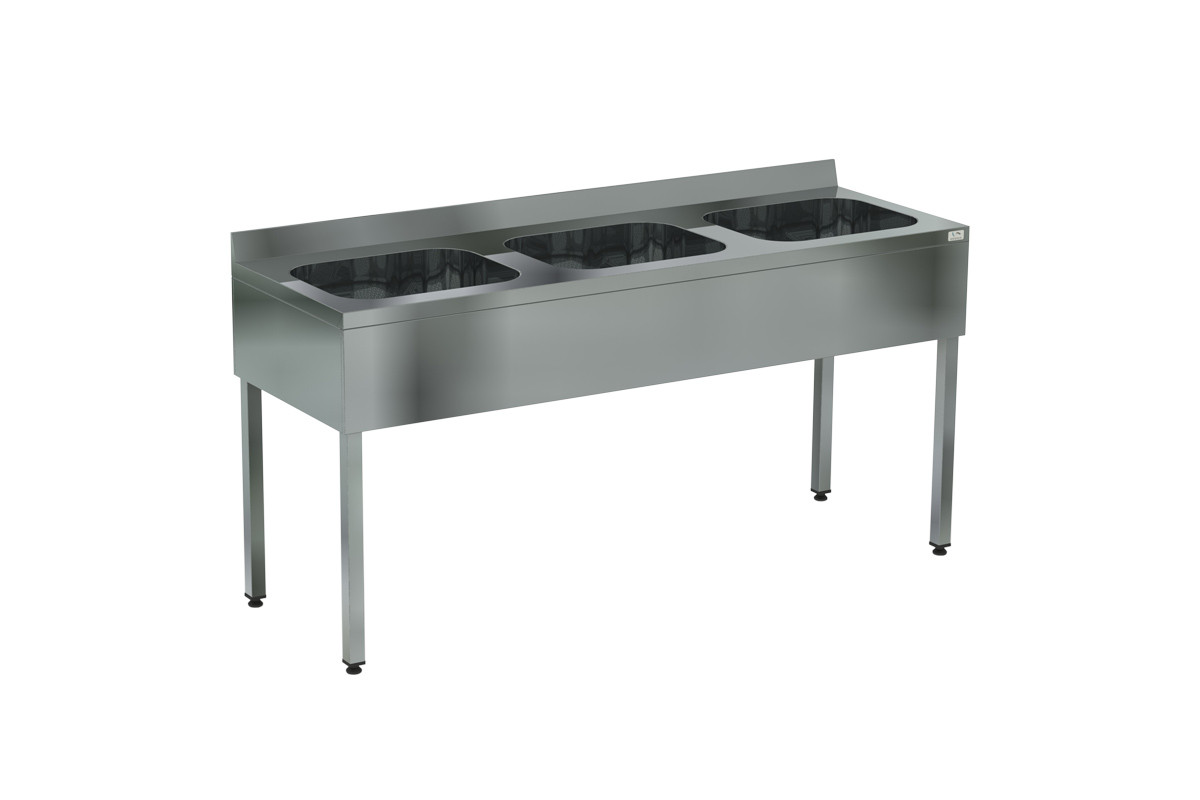 2100х700х870мм, Ванна моечная цельнотянутая трехсекционная (ёмкость - нерж. сталь. aisi 304, каркас нерж. труба 40х40, фартук с 4-х сторон), (ёмкость 600х500х300)