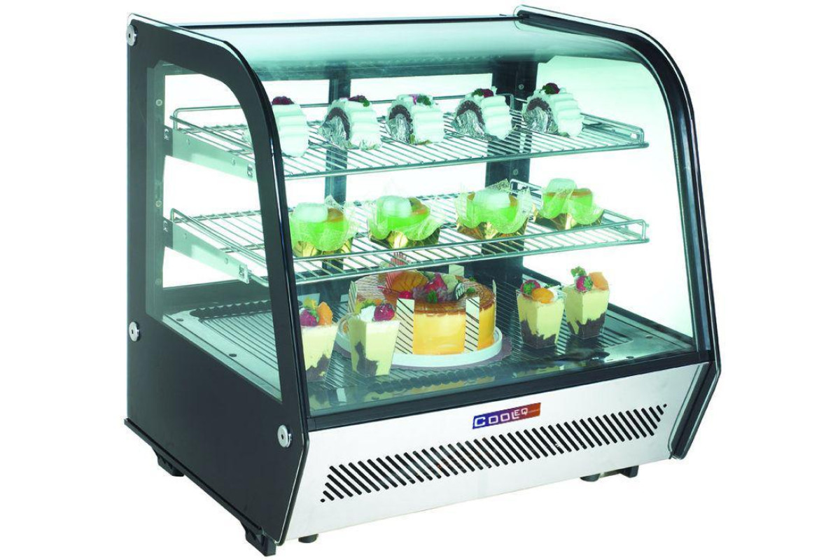 Гнутое стеклоХолодильная витрина COOLEQ CW-120 предназначена для хранения и демонстрации продукта с одновременным его охлаждением. В витрине предусмотрены две хромированные полки и гладкая поверхность внизу, на которых можно хранить торты, пирожные, десерты и т.п. Витрина оснащена LED - подсветкой.