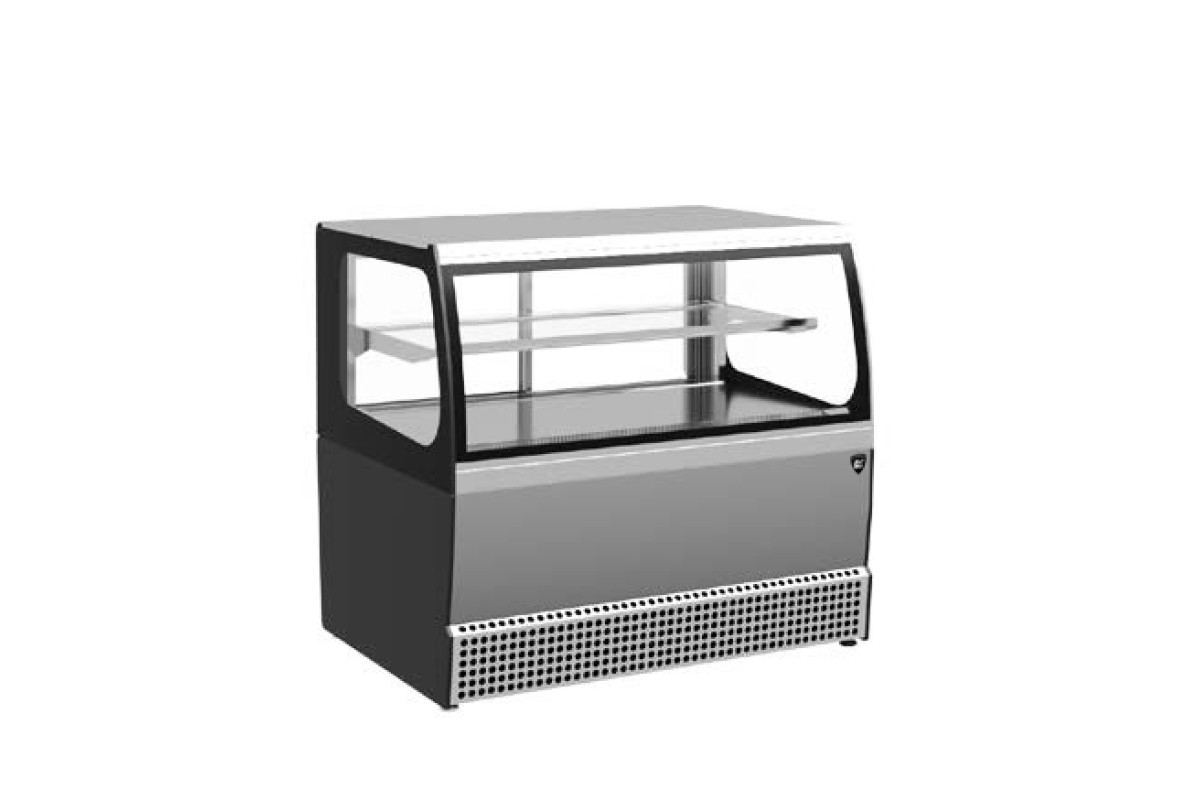 950х740х865 t режим 0…+7 C. Витрина холодильная,со встроенным агрегатом, гнутое стекло, 1 стеклянная полка, полезный объем —0,14 м3,охлаждаемая площадь поддонов для выкладки продуктов, 0,77 м2, динамическое охлаждение, раздвижные задние шторки, оттайка естественными теплопритоками, потр. эл.энергии в сутки —8,2 кВт, R290, цвет корпуса — нержавейка.